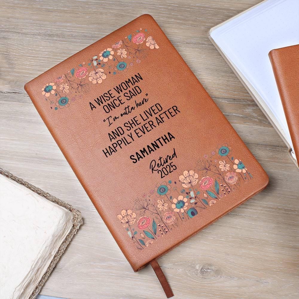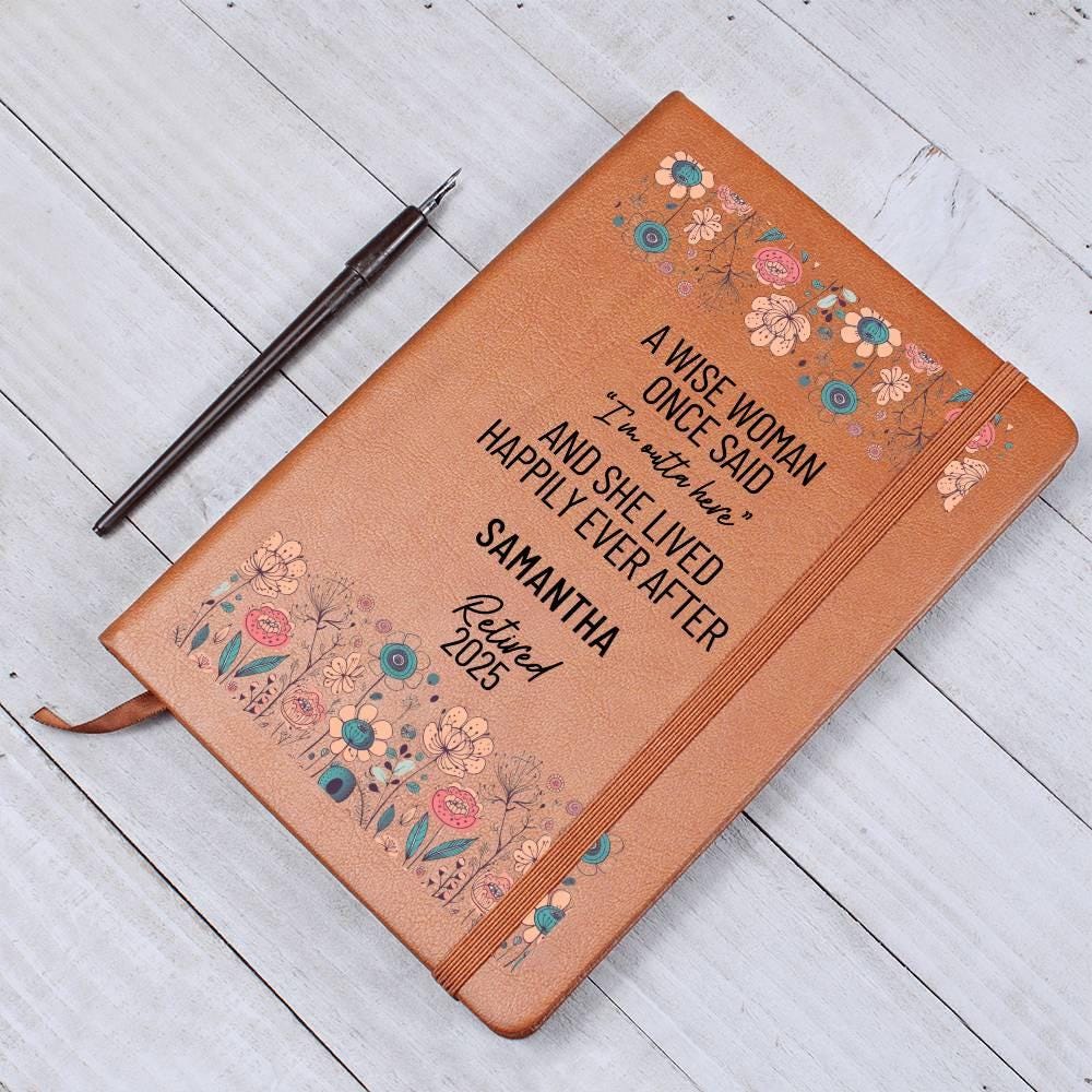 The cover of our Graphic Leather Journal bears the funny saying wishing your special someone well on their retirement! This beautifully crafted journal is the perfect gift for retirement, a departing colleague, or anyone whose impact deserves recognition.